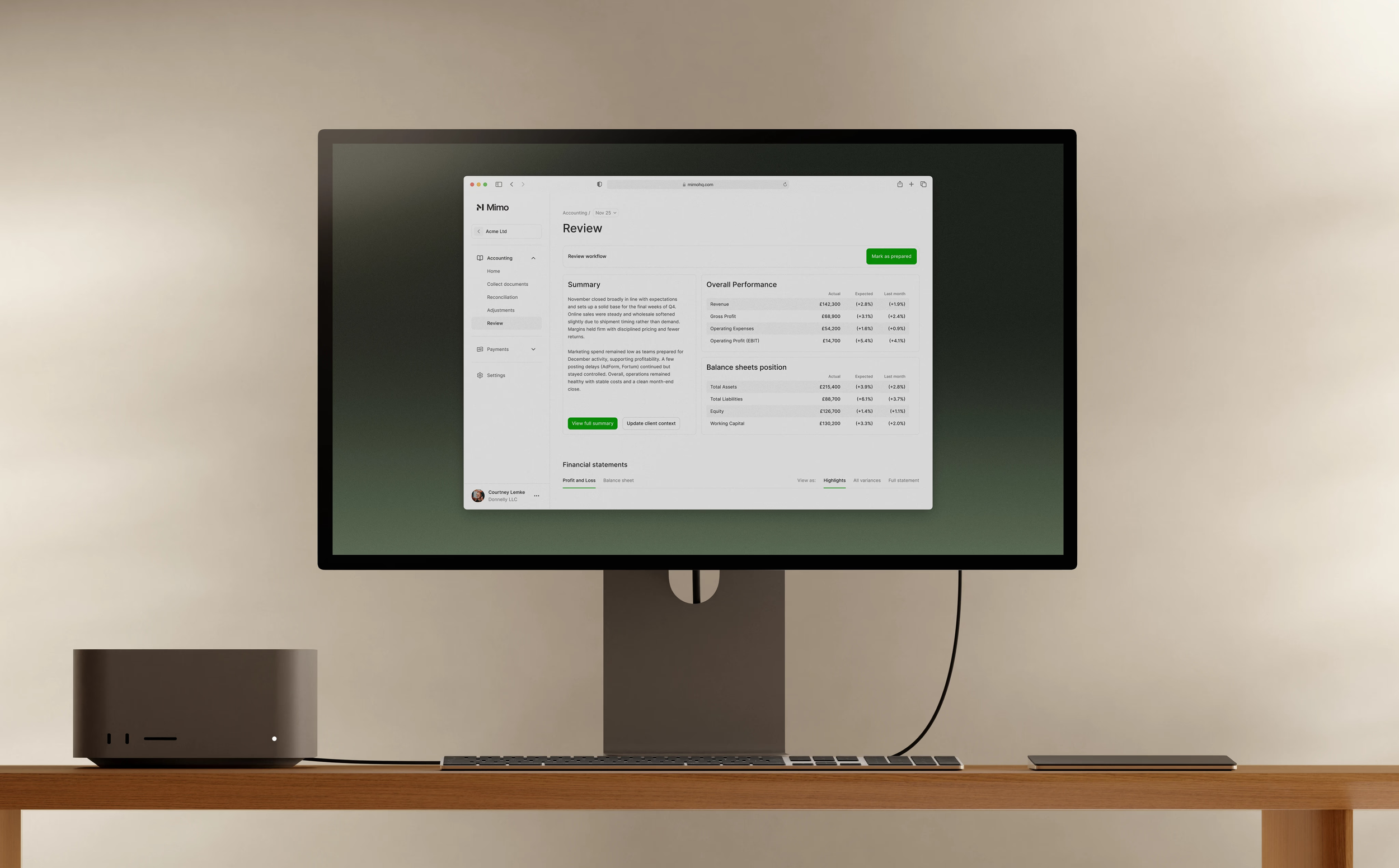 So accountants can do more, and their clients can do better. Mimo removes the admin that slows firms down and the financial friction that holds small businesses back by automating month-end, unifying payments and simplifying financing.
